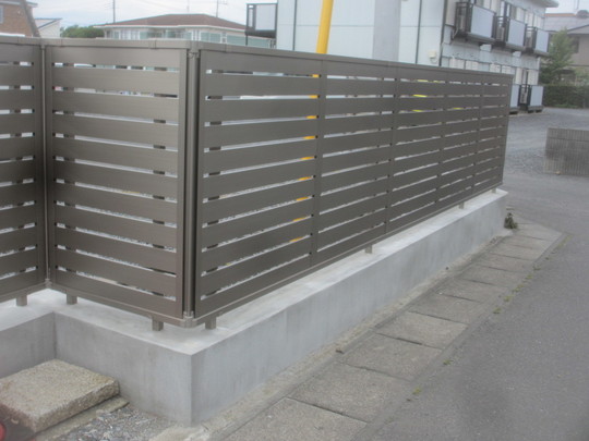 アルミフェンスを設置し、基礎の側面の壁及び天端をモルタルで化粧補修をして完成となります。